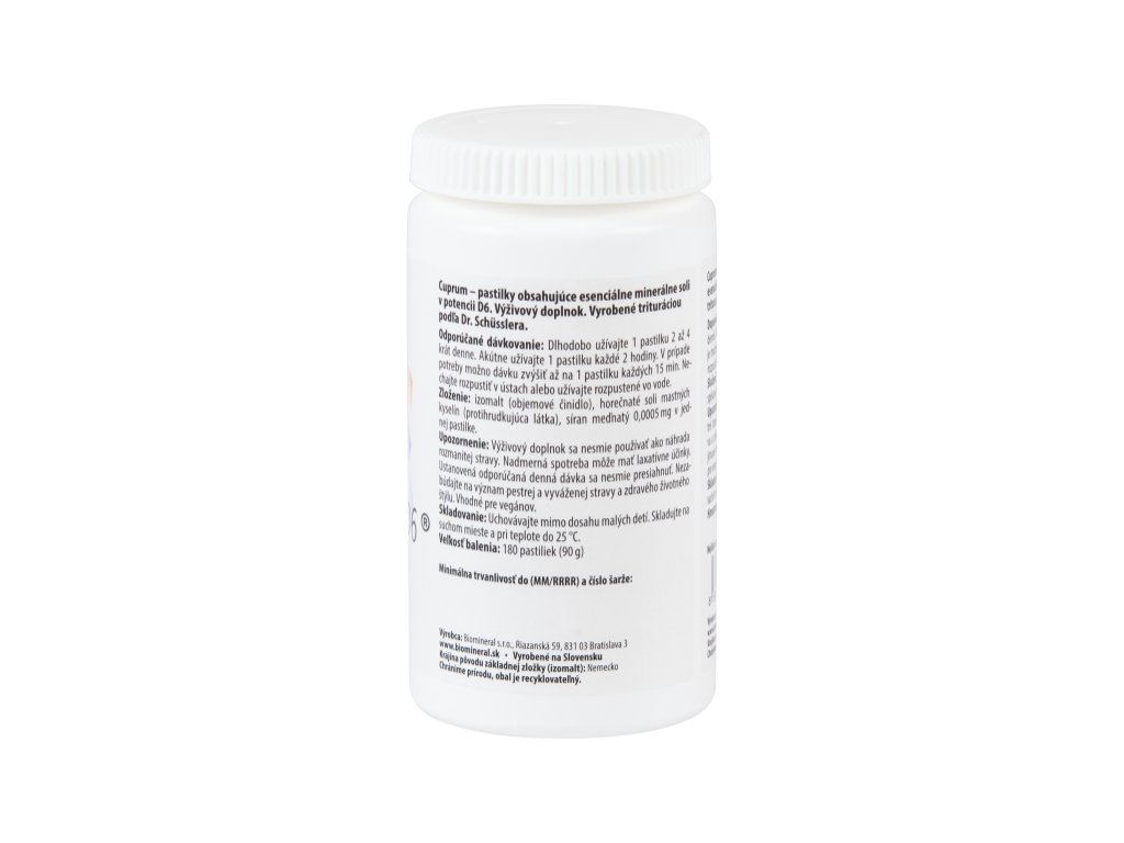 - Pastilky obsahujúce esenciálne minerálne soli v potencii D3 a D6. Vyrobené trituráciou podľa Dr. Schűsslera.