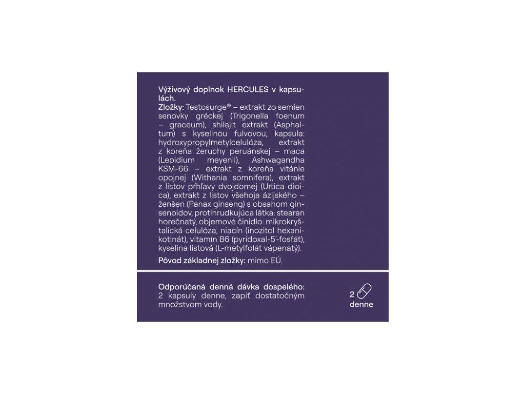Hercules je prvý doplnok výživy na Slovensku a v Českej republike, ktorý obsahuje klinicky testovanú rastlinnú látku Testosurge®, ktorá má jedinečný mechanizmus účinku.