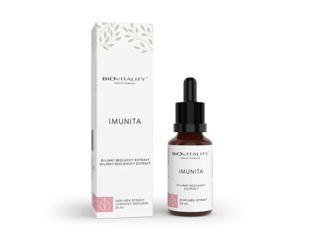 Glycerín, voda, Echinacea purpurová (Echinacea purpurea) štand. extrakt z celej rastliny (polyfenoly 4 %), Čierny česnek fermentovaný (Allium sativum) extrakt z hlávky (10:1), rúcha peruánska (Lepidium Meyenii) extrakt z koreňa (10:1), Beta 1,3 D Glucan, Açai berry (Euterpe oleracea) extrakt z plodu (4:1), Kapucínka väčšia (Tropaeolum majus) extrakt z celej rastliny (10:1), Rakytník rešetliakovitý (Hippophae rhamnoides) štand. extrakt z plodu (flavonoidy 10%), vitamín C (kyselina L-askorbová), Ženšen (Panax ginseng) štandardizovaný extrakt z koreňa (ginsenoidy 25%), Aloe vera (Aloe barbadensis) extrakt z listu (200:1).
