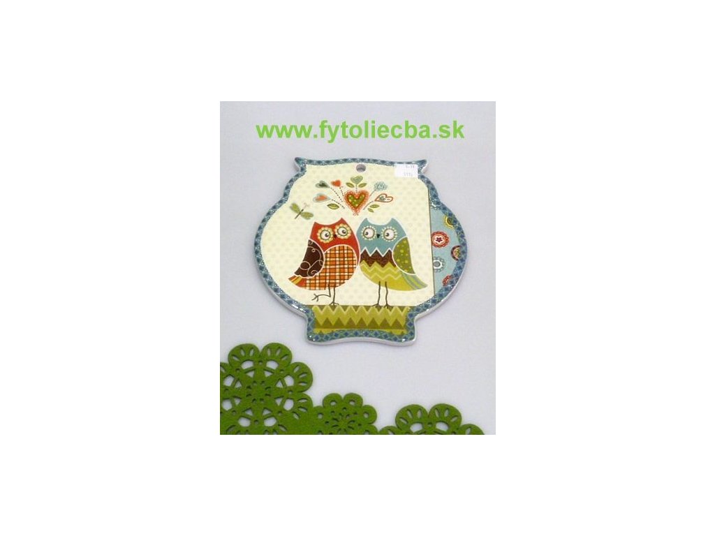Keramická podtácka na odkladanie čajníku alebo hrnčeka s motívom sovičiek.