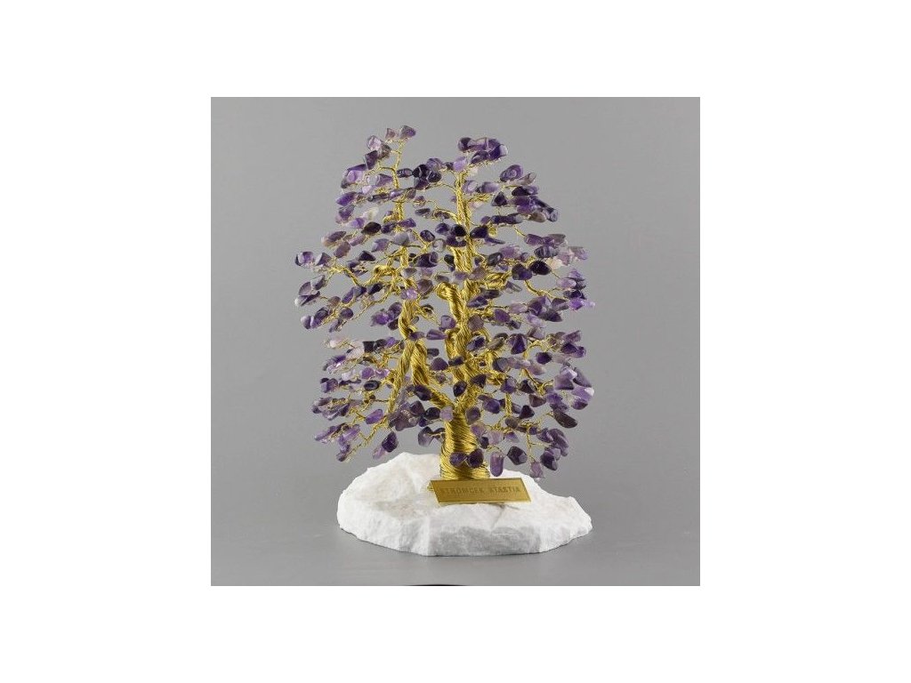 Jedná sa o kúsky tromlovaných drahých kameňov, prilepené na drôtiky v tvare stromu na kamennom podstavci. Stromčeky šťastia prinášajú do Vášho života pohodu a šťastie, a podporujú podporné účinky kameňov, z ktorých sú vyrobené.