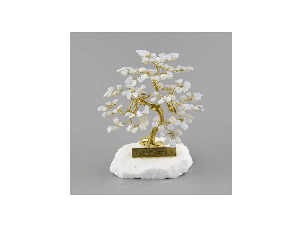 Jedná sa o kúsky tromlovaných drahých kameňov, prilepené na drôtiky v tvare stromu na kamennom podstavci. Stromčeky šťastia prinášajú do Vášho života pohodu a šťastie, a podporujú podporné účinky kameňov, z ktorých sú vyrobené.