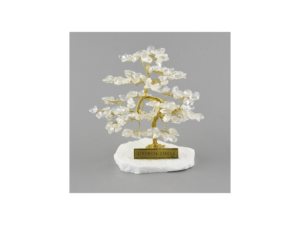 Jedná sa o kúsky tromlovaných drahých kameňov, prilepené na drôtiky v tvare stromu na kamennom podstavci. Stromčeky šťastia prinášajú do Vášho života pohodu a šťastie, a podporujú podporné účinky kameňov, z ktorých sú vyrobené.