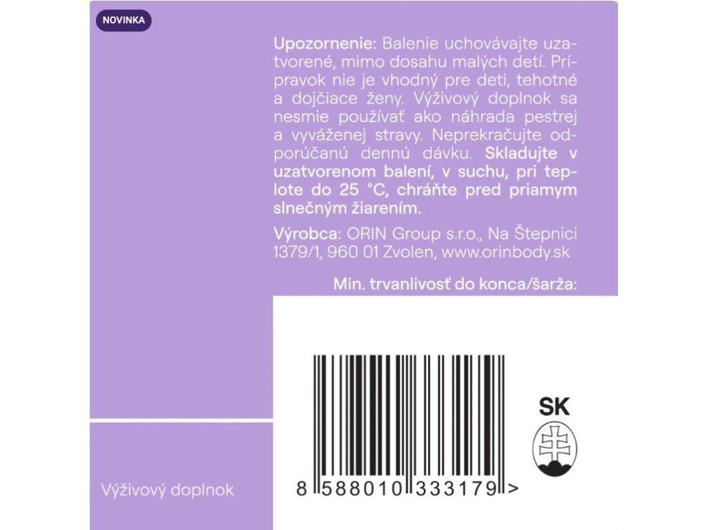 Upozornenie: Nádobku uchovávajte uzatvorenú, mimo dosahu malých detí. Nevhodné pre deti, tehotné a dojčiace ženy. Výživový doplnok sa nesmie používať ako náhrada rozmanitej stravy. Neprekračujte odporúčanú dennú dávku. Skladujte v uzavretej nádobe, v suchu pri teplote do 25 °C, chráňte pred teplom a priamym slnečným žiarením.